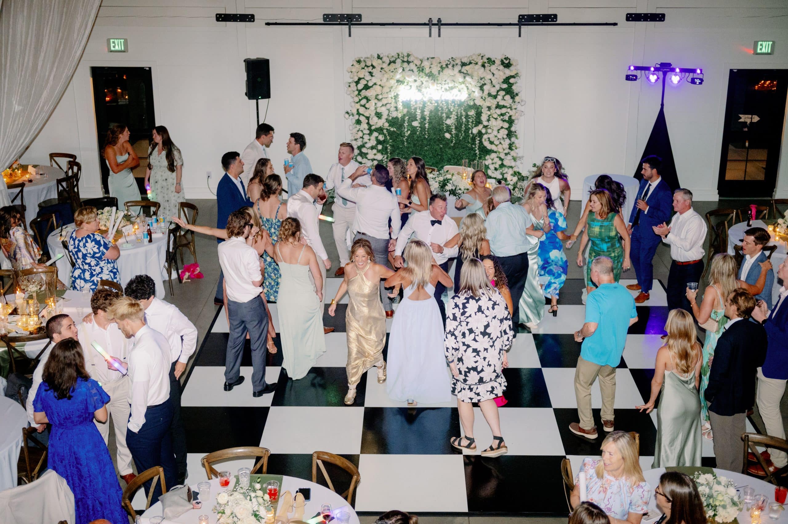 Wedding-party direction for up to 24 people (lineup, spacing, cueing).